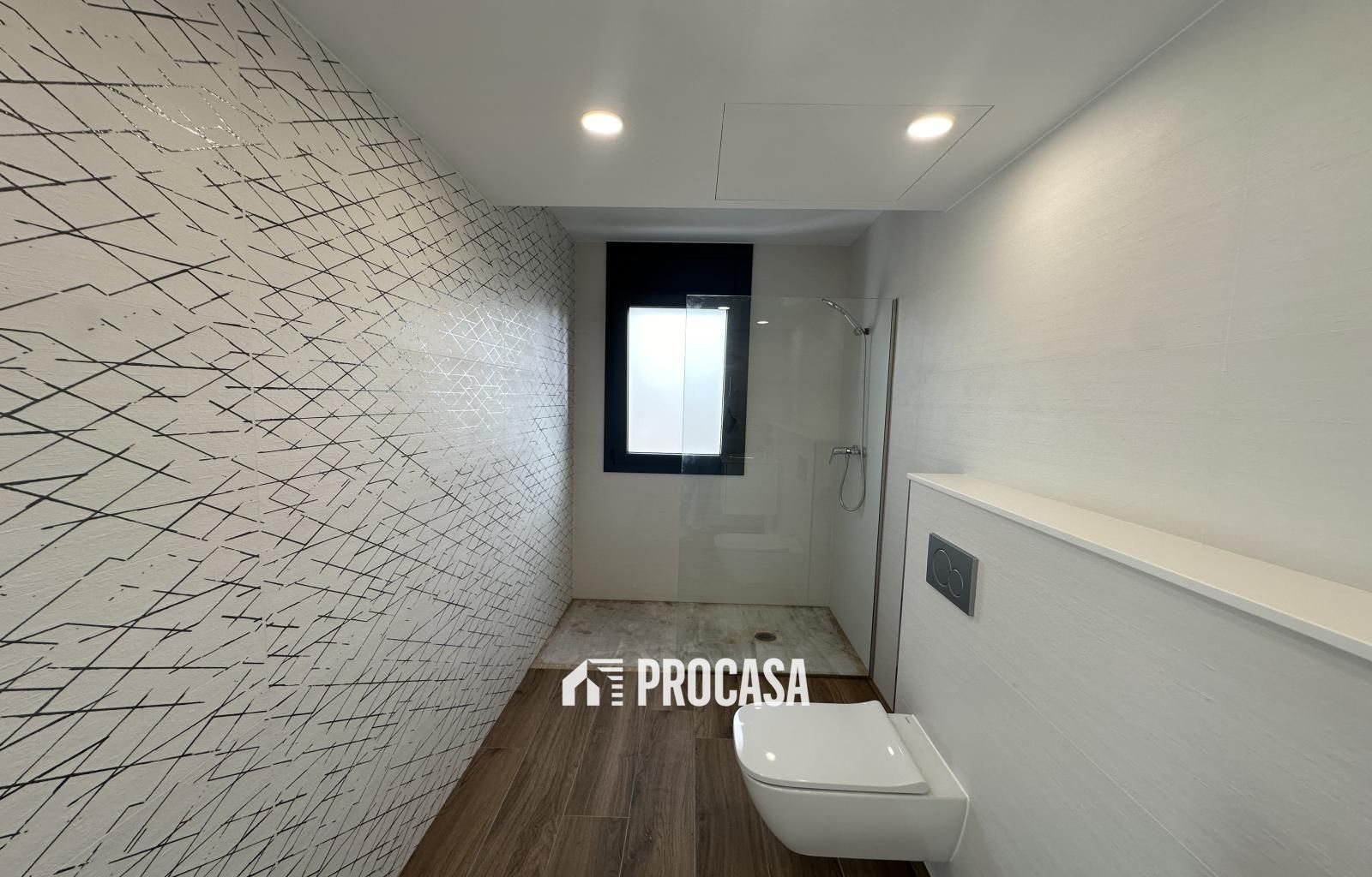 Die Terrasse und der Swimmingpool sind nach Südwesten ausgerichtet, so dass man das ganze Jahr über die Sonne genießen kann. Das Erdgeschoss ist in ein geräumiges Wohnzimmer mit Essbereich und offener Küche aufgeteilt. Die Gesamtwohnfläche von 62m2 ist von großen Fenstern umgeben, die viel Licht ins Innere lassen. Außerdem gibt es eine Gästetoilette, ein geräumiges Schlafzimmer mit Einbauschränken und ein Badezimmer mit italienischer Dusche.