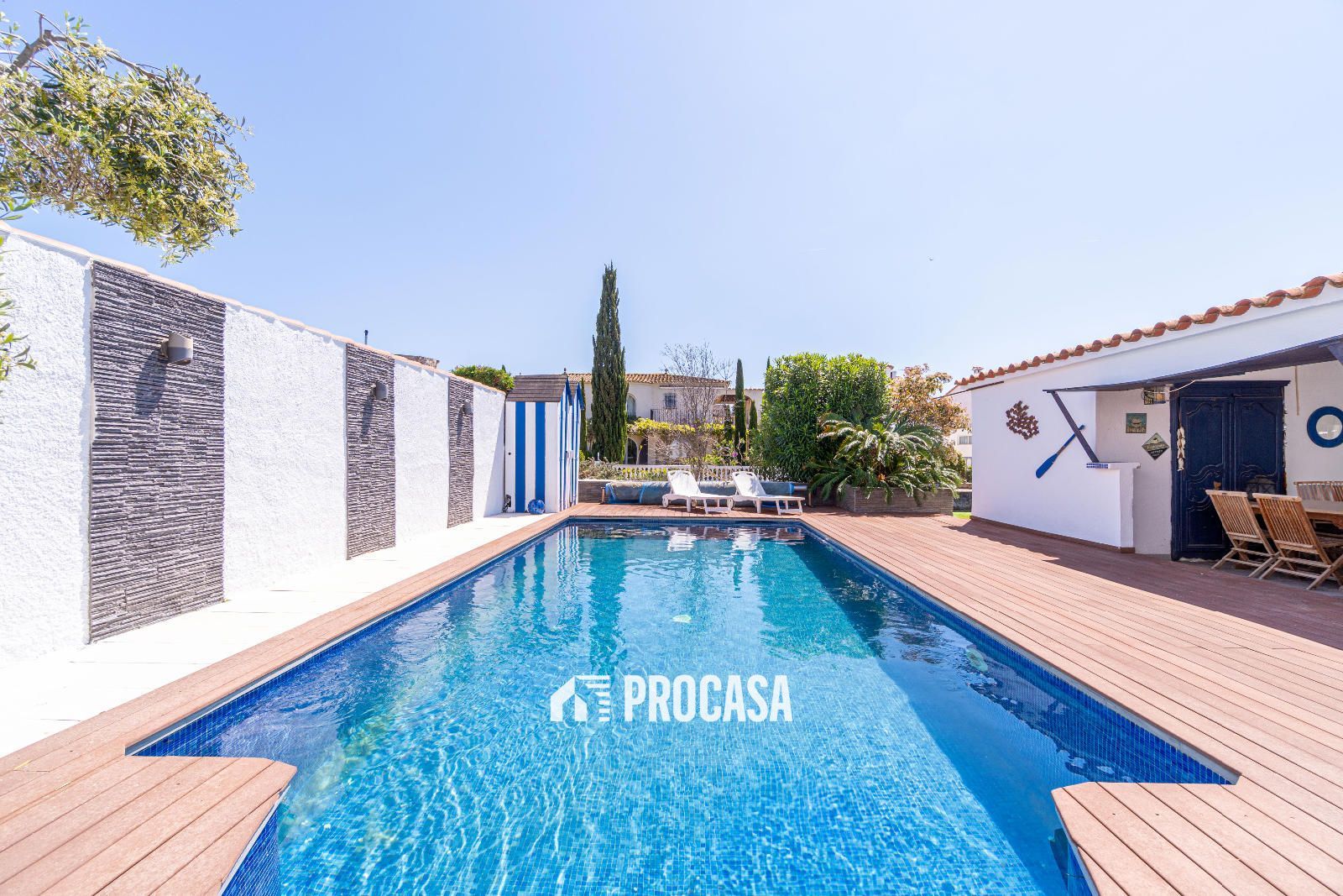 Der private Pool wird von einem Technikraum begleitet, der groß genug ist, um einen Jetski zu lagern. Dank eines speziellen Krans kann dieser ganz einfach zu Wasser gelassen werden.