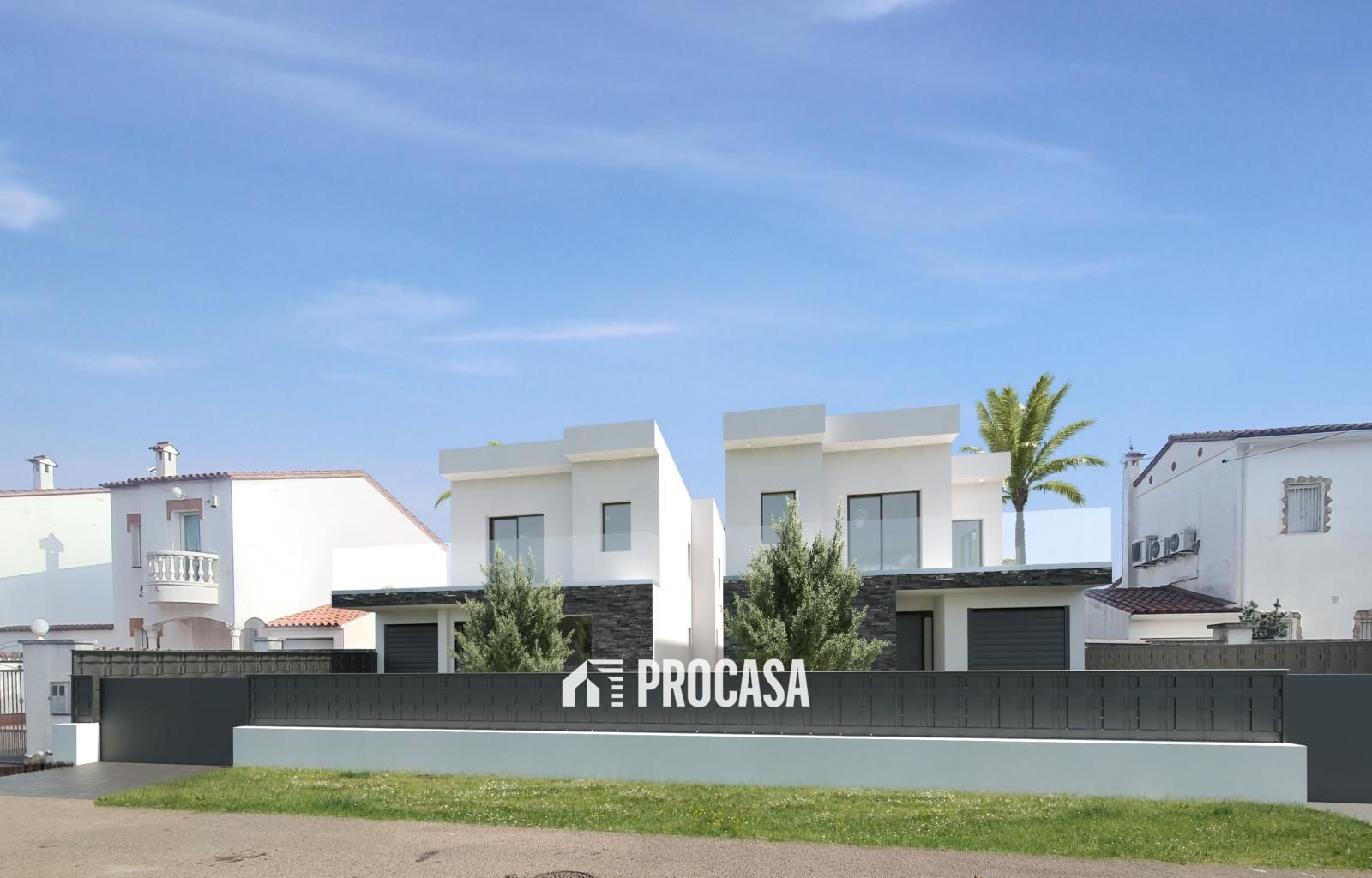 Projet de deux maisons nouvellement construites situées sur le canal étroit à Empuriabrava face au sud.