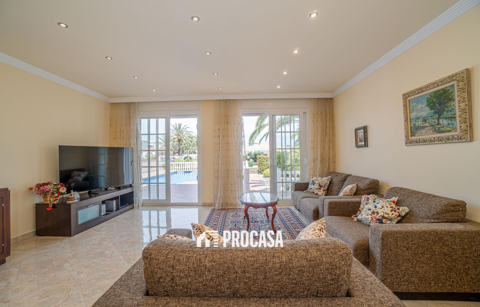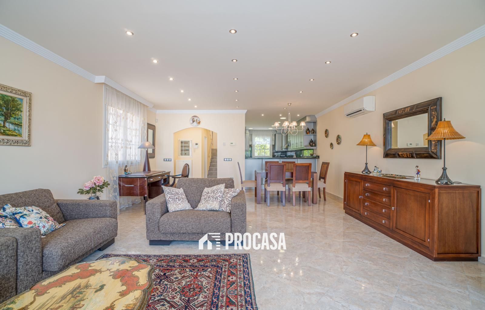 Cette belle maison avec un terrain de 516 m2 et une superficie construite de 190 m2 combine des caractéristiques classiques avec des designs modernes et est située sur le large canal. La propriété se distingue par sa tour finie en pierre, ce qui lui confère un cachet unique. Au rez-de-chaussée il y a une grande cuisine entièrement équipée, une salle à manger spacieuse à côté d'un grand salon, une salle de bain pour invités. Le premier étage est distribué en trois chambres entièrement meublées, avec de grandes armoires intégrées. La chambre principale possède sa propre salle de bain et une terrasse offrant une vue spectaculaire sur le large canal et les montagnes. Les deux autres chambres, tout aussi confortables et bien conçues, sont séparées et partagent une salle de bain avec douche moderne et finitions de haute qualité.A l'extérieur, la maison dispose d'une magnifique piscine chauffée de 4x8 mètres, parfaite pour en profiter toute l'année. A côté de la piscine, vous trouverez une douche chaude. Le grand garage peut accueillir deux voitures, assurant suffisamment d'espace pour du rangement supplémentaire.Extras : Machines de climatisation Mitsubishi, chauffage central au diesel avec chaudière programmable et réservoir de 500 litres qui sert également à chauffer l'eau, année de construction 2007, fenêtres en aluminium avec stores électriques centralisés, peinture extérieure lavable à l'eau sous pression, alarme, porte d'entrée électrique, électrique porte de garage, arrosage automatique programmable, réservoir d'eau de 750 m2, compresseur pour pression d'eau, système de panneaux solaires 11 kW pour eau chaude, système Smart Home